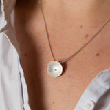 A textured daisy pendant on fine snake chain in sterling silver with a fine silver stud in the centre.