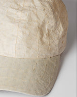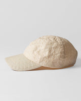 DNJ Paper is an experimental paper studio founded by Daphne and Jake in 2020. The paper they use is handmade in Japan. They know exactly who made each sheet of paper that they use and have a surprising amount of information about each atelier and their methods.Each cap is handmade from scratch in limited edition small-scale runs in small batches of material and colour in their studio in Melbourne, Australia.Deadstock, repurposed, or found fabric is hand-stitched to paper, then melted Australian beeswax is brushed on and the hat is lightly baked. The wax bonds the fibres of the hat and fabric, strengthening it and changing its materiality.