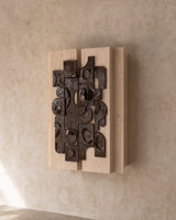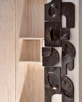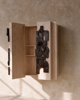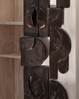 The ceramic surface resembles the shards of ancient vessels and reliefs, objects that speak of cultural legacy yet remain incomplete. Like artefacts concealed beneath layers of soil, the cabinet suggests a history partially revealed, where fragments come together but never resolve into full clarity. The cabinet is both a functional object and metaphor. It is a vessel for contemporary use that simultaneously carries the presence of a past we can glimpse but never wholly uncover.