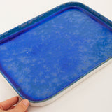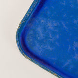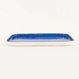 A rectangle plate with soft corners and vibrant custom glaze designed by Ryan Foote.