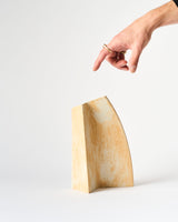 Angela Hayes is a Naarm/Melbourne-based ceramic artist. Her geometric sculptures reference classic pouring vessels. The lip, the body, the foot, and the handle have evolved from wheel thrown vessels to contemporary slab-made architectonic forms. Hayes studied Fine Art (Ceramics) at Queensland College of Art and has completed both a Bachelor and Master of Landscape Architecture at the University of Melbourne.