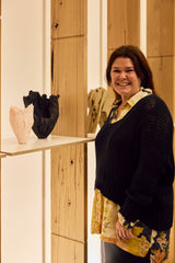 Lorraine's creative journey is one of self-discovery, guided by the tactile intimacy of clay. Through relentless experimentation, Dean challenges the material’s limits—sculpting vessels from within to expose a dialogue between vulnerability and strength. Each piece becomes a meditation on the human condition, revealing the layered complexity that shapes who we are. Dean has developed a process that fuses both porcelain and fabric in a single firing, allowing these contrasting materials to merge in delicate tension. Through folds and layers, Dean explores the "emotional resonance and the quiet threads that connect us— echoes of memory, relationship, and lived experience."