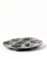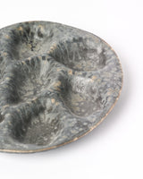 The highly sought after Oyster Plate in a black crystalline glaze. These never last long! Serves 6 oysters and a condiment or slice of lemon.
