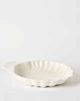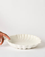 A decorative serving dish for sides, pasta and sweets. Part of the Service! collaboration featuring tableware crafted from the imagination of two women in the food industry (Claire Ellis and Simone Jude). With all the frills of silverware but none of the seriousness of silver service.