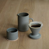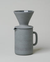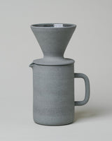 A wheel thrown, matte textured coffee pot in slate grey with a clear glazed interior. Consisting of a jug and pour over, designed to fit most 2 cup paper filters. Suitable for use in dishwashers and microwave ovens. Care should be taken when stacking and washing ceramics. Avoid thermal shock from rapid heating and cooling.