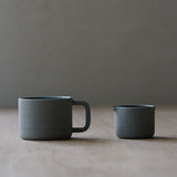 A wheelthrown milk jug made from a textured, slate grey clay body with a clear glazed interior. Suitable for use in dishwashers and microwave ovens. Care should be taken when stacking and washing ceramics. Avoid thermal shock from rapid heating and cooling