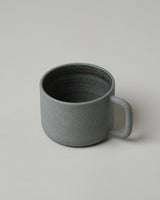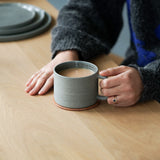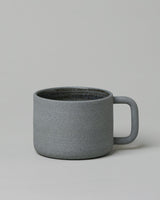 A wheel thrown, matte textured mug in slate grey with a clear glazed interior. Suitable for use in dishwashers and microwave ovens. Care should be taken when stacking and washing ceramics. Avoid thermal shock from rapid heating and cooling.