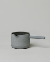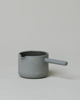 A wheeltrown pourer with handle. Great for serves of sauces and dressings. Made from a textured, slate grey clay body with a clear glazed interior. Suitable for use in dishwashers and microwave ovens. Care should be taken when stacking and washing ceramics. Avoid thermal shock from rapid heating and cooling.
