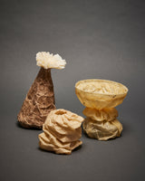 ly“Gathering” is a series of vessels that explores the form and materiality of hand-made washi paper. Drawing on an endangered historical tradition of making clothing from washi, called kamiko, DNJ PAPER have merged garment-making techniques with the surprising material properties of washi. Stitched paper ichirin-zashi (single flower vase), made from hand-made Japanese paper. The paper was produced by Kurotani Washi Cooperative Association in Kyoto Prefecture. This vessel has been treated with organic beeswax, and is water-tight. Please avoid placing it near heat sources.
