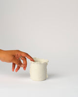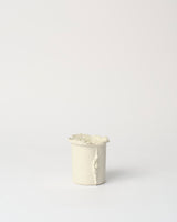 The small cylinder is perfect on its own or as part of a larger group of objects. It can be used to store things like pencils and flowers but needs a jar inside to hold water. The cylinder is made from porcelain but due to its construction is not water tight. It can be washed in warm water.