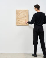 These works are from Stokes’ Virgin series, a body of work that considers beginnings, thresholds and the conditions of first encounter. The works approach painting as sites of origin where surface, material and gesture are stripped back to their most elemental states. Stretched linen and raw supports are presented with a deliberate sense of exposure, resisting polish in favour of immediacy. This “virgin” state is not innocent but charged: it holds the tension between potential and restraint, matter and meaning. By foregrounding structure, labour and material, the works consider how art comes into being, how the viewer meets it, and how sensation might exist before interpretation.