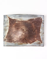 Material: clay slab with oxide brushed gauze texture and satin glaze. Oxidation firing.