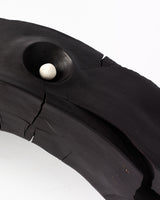 Material: Solid black clay, danish oil applied to its surface, and a petite porcelain