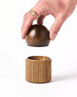 A small wooden vessel from Walk In The Park’s ongoing Stadium collection. While often used as a salt keeper in the kitchen, its open form invites many interpretations — a place to hold rings, spices, or other small treasures of daily life.