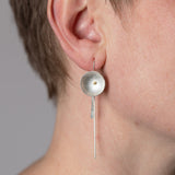 Shimara Carlow's signature daisy's on a long hook earring in sterling silver.
