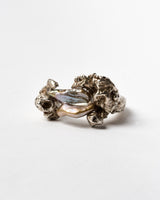 The Caviar Ring has been made through a combination of carved and cast reliefs of plants and barnacles and cast into fine silver. The featured ring has been set with salvaged keshi pearl. Each ring can be made in various metals and stone and pearls on request.