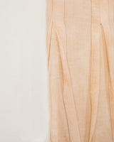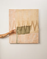 Hannah Hall is an Naarm/Melbourne-based artist, influenced by modernist abstraction and late 20th century textile art history. Her abstract, textile-based work, contemplates the layered complexities of material, including themes of materiality, craft, labour, domesticity, and memory. Traditional techniques (such as smocking, tucking, pleating, and slashing) merge with staining processes using fruits, vegetables, spices, and synthetic pigments, to create works occupy a hybrid space between expanded painting and craft practices.