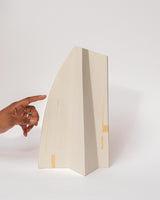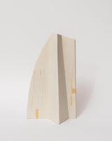 Angela Hayes is a Naarm/Melbourne-based ceramic artist. Her geometric sculptures reference classic pouring vessels. The lip, the body, the foot, and the handle have evolved from wheel thrown vessels to contemporary slab-made architectonic forms. Hayes studied Fine Art (Ceramics) at Queensland College of Art and has completed both a Bachelor and Master of Landscape Architecture at the University of Melbourne.