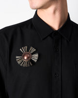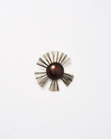 The Kugelscrubber Brooch is a large, striking statement piece that utilises the ancient craft of brush binding to create a graphic brooch, which is both simple and striking at once. The fibres are bound into a decorative, American walnut timber blank and protected by a domed, oxidised copper plate and a sterling silver back plate with a brooch fastening attached.