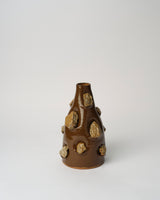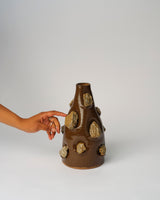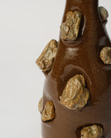 A sculptural wheel thrown vessel exploring the intricate realms of ceramic supply chains and mining politics within Australia. Rocks crafted from ceramic sink trap 'waste' adorn the terracotta vessel. The experimental decoration technique challenges conventional norms and symbolizes extraction, distortion, and enshrinement. Claire’s work continually invites viewers to contemplate the complexities of materiality and production processes.