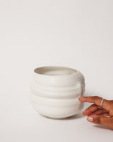 The Free-Form series presents a freely thrown sculptural vessel form that takes on its own life as it is being created. In particular a fluidity is apparent in these works, as each work depicts some of the attributes of the malleable nature of clay. The vessels may also be reminiscent of natural forms such as sea shells and other matter. However, the works may conjure other responses for the viewer. The dry matt glaze on these forms is delicate. The vessel should be washed by hand in warm soapy water and rinsed. Dry with a soft cloth.