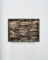 The Evidence (8440g) and The Evidence (8365g) are part of a series created in 2023 and were first exhibited at Spring 1883 Art fair. They were created using photographs reprinted from the artist's family archive. The photographs are sliced (or put through a paper shredder) in an act destruction. Plaster partially covers these fragmented remains. The works appear as attempts at bringing order to the past and also bring to mind redacted documents or destroyed evidence.