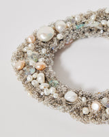 Louise Meuwissen's wearable works are painterly sculptures to adorn the body. Distillations of Meuwissen's largescale sculptural works, these intimately sized pieces are made with re-purposed dress jewellery which has been dissembled and hand-embroidered into intricate abstract designs.