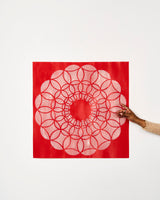 Dohrmann’s love of textile processes comes from early childhood experiences when her mother, a dressmaker, taught her to sew, knit and crochet from a young age. The pattern in this series is a geometric interpretation of circular crocheted doilies, which belonged to her mother, reflecting the mathematical thinking needed to make many domestic textiles. Many of these items along with textile knowledge were brought to Australia through migration, carrying with them emotional and intergenerational connections.
