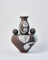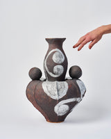 This vessel is part of a constellation of forms that speak across time, memory, and whakapapa. Its spherical protrusions and embracing silhouette suggest an exchange — a gathering of presences in dialogue. Painted in silver with stylised kōwhaiwhai forms, the surface becomes a site of energetic connection: orbiting, echoing, conversing.