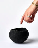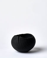 Ryujin carefully turns the wood on a lathe to create high-sided bowls, urns and platters based on the forms of sacred Japanese temple vessels. During the long air drying process, the forms begin to shift as the green wood loses moisture. The final dramatic transformation takes place as the timber chars and splits during the unpredictable burning process.