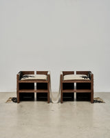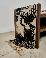 This work places two chairs in dialogue, their surfaces upholstered in textiles created by dismantling Victorian beaded garments and stitching them back together. Each stool carries a metal maker’s plaque, grounding the object in a language of craft and repair.