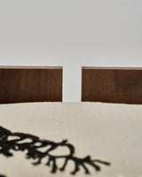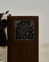 Material: Walnut veneered plywood, 100% raw-silk with onyx beaded, cotton-lace applique, stainless steel plaque