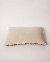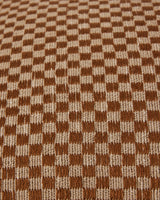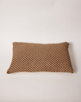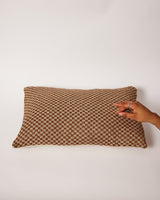 A handwoven cushion combining earthy tones with a classic check pattern.