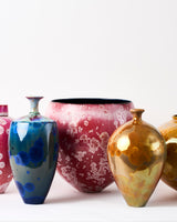 Ted Secomb is a ceramic artist based in Naarm, Melbourne. Originally establishing a studio in Toowoomba, QLD, he moved to the Yarra Valley in 1989. Ted is known for his beautiful and graceful forms, with glazes, including crystalline, that are rich in colour, and delicate in Tetexture and patterning. Some of his glazing is reminiscent of ancient Chinese glazes. The colours in his garden are also an inspiration to him, and his glazes in autumnal colours are a direct response to the autumn season in Victoria.