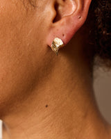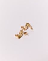 The "Affect/Garden" collection draws inspiration from the quiet beauty of a botanical scene, exploring the intricate relationship between nature and the hand of the maker. The collection investigates the untold story of the soil, the bone, the leaves, connected through the touch of the gardener, the artist. Each piece’s organic form is shaped by the pressing of the hand. This particular design features stud-style earrings that wrap gracefully around the earlobe. Although they are a matching pair, each earring has a unique appearance when worn, with the left and right sides differing slightly due to the natural curve of each petal.
